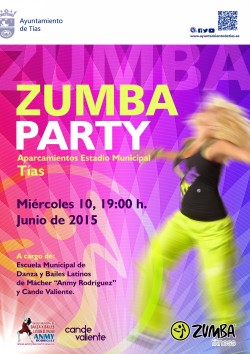 Zumba Party, en los aparcamientos del Estadio Municipal de Tías a cargo de: Escuela Municipal de Danza y Bailes Latinos de Mácher “Anmy Rodríguez” y Cande Valiente Lugar Aparcamientos del Estadio Municipal de Tías Fecha 10 Jun Horario(s) a las 19:0...