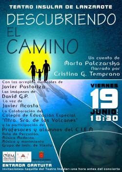 Descubriendo el Camino. Conciertos de fin de curso del CIEM Cuento musical en colaboración con el Centro de Educación Especial 'Nuestra Señora de Los Volcanes' Lugar: Teatro Insular de Lanzarote Hora: 18.30 h. CONCIERTOS DE FIN DE CURSO DEL CIEM "...