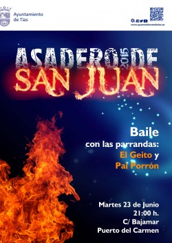 En la Calle Bajamar se celebra con Baile y parrandas: El Geito y Pal Porrón. Puerto del Carmen tendrá el acostumbrado Asadero de San Juan a partir de las 21.00h.