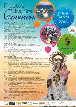 Este sábado 11 de julio comienzan las celebraciones de las Fiestas de Nuestra Señora del Carmen en Playa Blanca. Con eventos para todos los gustos y para todas las edades. Destacan los eventos deportivos y culturales que se efectuarán hasta el lunes...