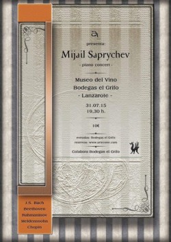 El prodigioso pianista Mijail Saprichev ofrecerá un concierto en las instalaciones del Museo del Vino, de Bodegas el Grifo el viernes 31 de julio de 2015. El concierto, que tiene carácter clásico, comenzará a las 19:30 horas. Saprichev ofrecerá a lo...
