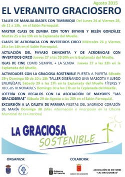 -TALLER DE MANUELIDADES CON TIMBIRIQUI Del lunes 24 al Viernes 28 de 11 a 13 horas, en el Salón Parroquial. -MASTER CLASS DE ZUMBA CON TONY BUYANG Y BELÉN GONÁLEZ Martes 25 a las 19 horas en la Explanada del Muelle -CLASES DE ACROBACIA CON INVERTID...
