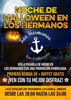 Ven a pasarla de miedo en Los Hermanos con una promoción embrujada: primera bebida 5 euros y buffet gratis. Ven con tu mejor disfraz.