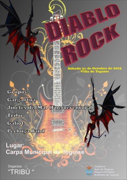 Este sábado 31 de Ocutbre en la Villa de Teguise se presentan en la Carpa Municipal de Teguise los grupos: Gargantua, Jinetes del Mal (Fuerteventura), Tribu, Galiot y Pechuga Band.