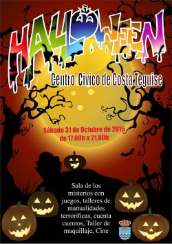 El sábado 31 de Octubre de 17:00 a 21:00 horas llega el Halloween al Centro Cívico de Costa Teguise. Con Sala de los misterios con juegs, talleres de manualidades terroríficas, cuenta cuentos, taller de maquillaje, cine y muchas cosas más.