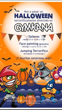 Ven a pasar un Halloween terroríficamente divertido en Gymkana. Con talleres, face painting, jumping terrorífico y muchas sorpresas más.