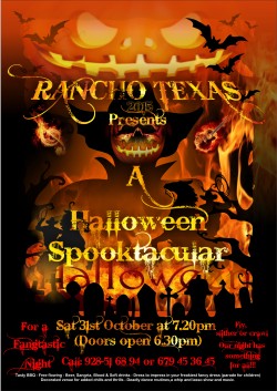 Te esperamos en la noche mas escalofriante en el Rancho Texas... ¡Feliz Halloween! Sábado 31 de octubre 2015 Las puertas se abren a las 18:30 La mágia comienza a las 19:25... ¡No te lo puedes perder!. Do you dare come and be a part of Rancho Texas's...