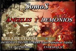 La obra de Teatro "Somos Ángeles y Demonios", de la Compañía Somos, se presenta el domingo 1 de noviembre en el Teatro Spinola de Teguise a las 21:00 horas. Las entradas cuestan 5 eurosy se pueden adquirir a partir del 1 de noviembre en la Oficina M...
