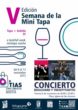 Como parte de esta V Edición Semana de la Mini Tapa en Tías, los conocidos grupos Boulevard y Treintytantos podrán el broche musical en la jornada de este viernes a las 20:00 horas en la Plaza de la Iglesia de San Antonio.