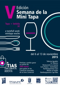 V Edición Semana de la Mini Tapa en Tías Tapa + bebida = 3 € del 6 al 13 de noviembre de 2015 ¡Participa y podrás ganar un premio de 200.- €! (para gastar en los Centros asociados de la Zona Comercial Zona Comercial Abierta Taberna Iguadén C...