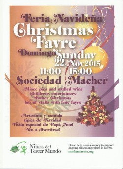 Artesanía y comida típica de Navidad. Visita especial de Papá Noeal. Mince Pies and mulled wind. Childrens entertainers. Fahter Christmas lots of stalls with fine fayre.