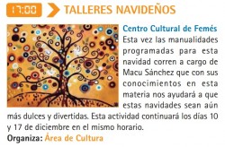 El jueves 3 de diciembre se harán los Talleres Navideños en el Centro Cultural de Femés a las 17:00 horas. Esta vez las manualidades programadas para esta navidad corren a cargo de Macu Sánchez que con sus conocimientos en esta materia nos ayudará a...