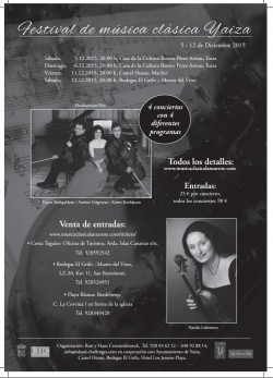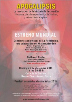 Los días sábado 5 y domingo 6 de diciembre se presenta en la Casa de la Cultura Benito Pérez Armas este Festival de Música Clásica de Yaiza. Apocalipsis debuta el domingo 6 de diciembre, a las 20:00 horas, en el emblemático edificio sureño. Serán cu...