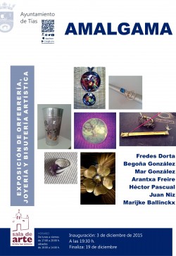 La Exposición AMALGAMA se inaugura el 3 de diciembre de 2015. Estará hasta el 19 de diciembre en la Sal ade Arte Ermita San Antonio. Horario: De Lunes a viernes de 17:00 a 20:00 horas y los sábados de 10:00 a 14:00 horas. La exposición de Orfebrería...