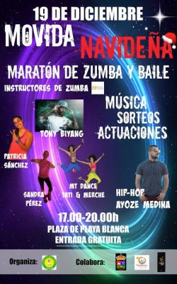 Como parte del programa de Navidad y Reyes de Yaiza, este sábado en la Plaza del Carmen de Playa Blanca se hará la "Movida Navideña" de 17:00 a 20:00 horas. Con un Maratón de Zumba y Baile con los instructores de zumba Tony Biyang, Patricia Sánchez,...