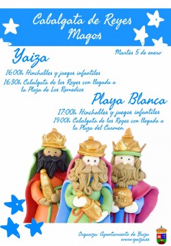 Las tradicionales Cabalgatas de Reyes en el municipio Yaiza se harán el martes 5 de enero de 2016. A las 16:00 horas habrá Hinchables y Talleres infantiles: "Cocinero por un día" y "Crea tu carta a SS.MM Los Reyes", en la plaza de los Remedios en lo...