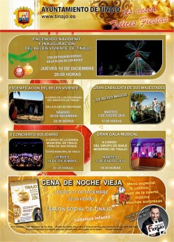 El Ayuntamiento de Tinajo invita a su programación para Navidad y Reyes 2015-2016. Jueves, 10 diciembre 20:00h.- Encendido navideño e inauguración del Belén viviente de Tinajo. Con un pequeño brindis en la plaza de San Roque. Viernes 11 de Diciem...