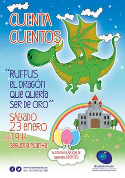 Este sábado 23 de enero, en el C.C. Biosgera Plaza podrás escuchar un cuento por La SuperHada Patricia Cuentacuentos. El cuento "Rufffus el Dragón que quería ser de Oro" hará volar la imaginación de los más pequeños a las 19:00 horas del sábado en la...