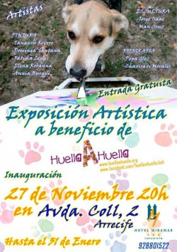 El próximo 27 de Noviembre a las 20 horas, en el Hotel Miramar Lanzarote será la inauguración de la Exposición Artística a Beneficio de Huella a Huella, en la que se podrá ver el trabajo de grandes artistas lanzaroteños concienciados con los animales...