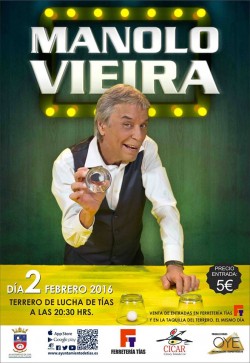 El humorista canario Manolo Vieira trae a Lanzarote su nuevo espectáculo ''Un, dos, tres... Probando'', con motivo de las Fiestas de La Candelaria y San Blas que organiza el Ayuntamiento de Tías. se presenta el 2 de febrero en el Terrero de Lucha d...