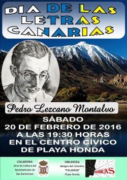 A petición del Consejo del Gobierno Regional, el polifacético -poeta, dramaturgo y prosista-, Pedro Lezcano Montalvo, se erige como autor protagonista del Día de las Letras Canarias 2016. El Colectivo de amigos de la Literatura “PALABRAS”, con se...