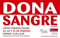 Espacio Solidario: Campaña de donación de sangre. El Centro Comercial Deiland colabora con la labor solidaria que lleva a cabo el Instituto Canario de Hemodonación y Hemoterapia. Los días 23, 24 y 25 de febrero, de 15:30 a 21:00 horas podrás ir y don...