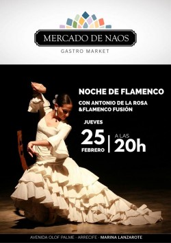 El mercado de Naos ofrece el jueves 25 de febrero una "Noche de Flamenco", para disfrutar a partir de las 20:00 horas, con Antonio de la Rosa y Flamenco Fusión.