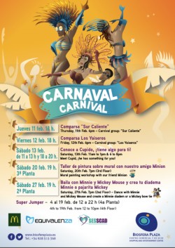 Desde el jueves 11 de febrero hasta el sábado 27 de febrero, se celebrarán varios eventos relativos al carnaval en el Centro Comercial Biosfera Plaza, en Puerto del Carmen. Programa: Jueves 11 de febrero. 18:00 horas - Comparsa "Sur Caliente". Viern...