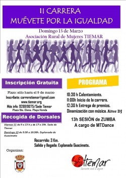 El Domingo, 13 de marzo, la Asociación Rural de Mujer Tiemar conjuntamente con el Ayuntamiento de San Bartolomé a través de las concejalías de igualdad y deportes organizan la “II Carrera Muévete por la igualdad”, que tendrá un recorrido de 3 km. con...
