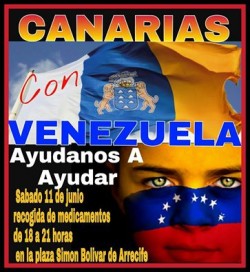 "Canarias con Venezuela, ayúdanos a ayudar" es una iniciativa de la organización "Venezolanos 2 en Lanzarote", invita a todos los venezolanos, canarios, latinos y residentes de Lanzarote a colaborar este sábado 11 de junio de 18:00 a 21:00 horas con...