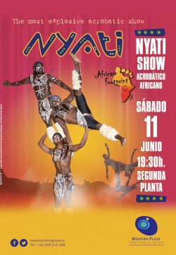 Este sábado 11 de junio a las 19:30 horas se presentan en el Centro Comercial Biosfera Plaza NYATI African footprints. De una duración aproximada de 45 minutos, este singular show acrobático africano, mezcla distintas disciplinas, tradiciones y valor...