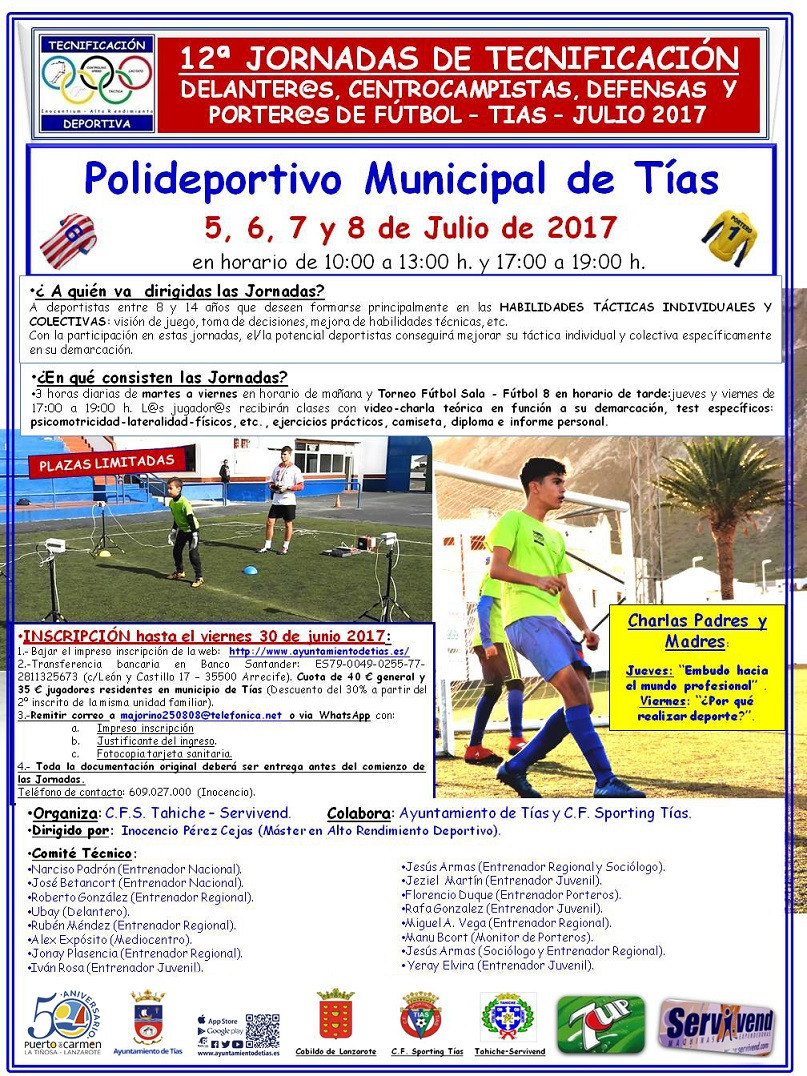 12ª Jornadas de Tecnificación: delanteros, centrocampistas, defensas y porteros de fútbol – Tías – julio 2017