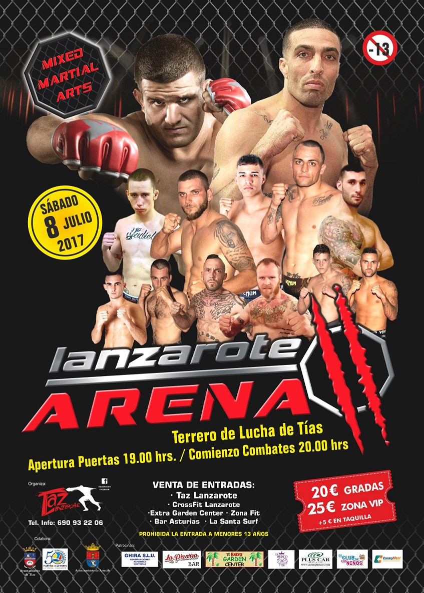 El sábado, 8 de julio, se presenta en el Terrero de Lucha de Tías "Mixed Martial Arts Lanzarote ARENA". La apertura de puertas será a las 19:00 horas y el comienzo de combates a las 20:00 horas.