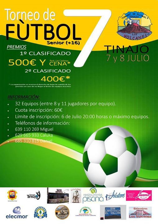 Regresa el Torneo de Fútbol 7 Los Volcanes con más fuerza que nunca, 7 y 8 de Julio en el campo municipal de Fútbol de Tinajo.