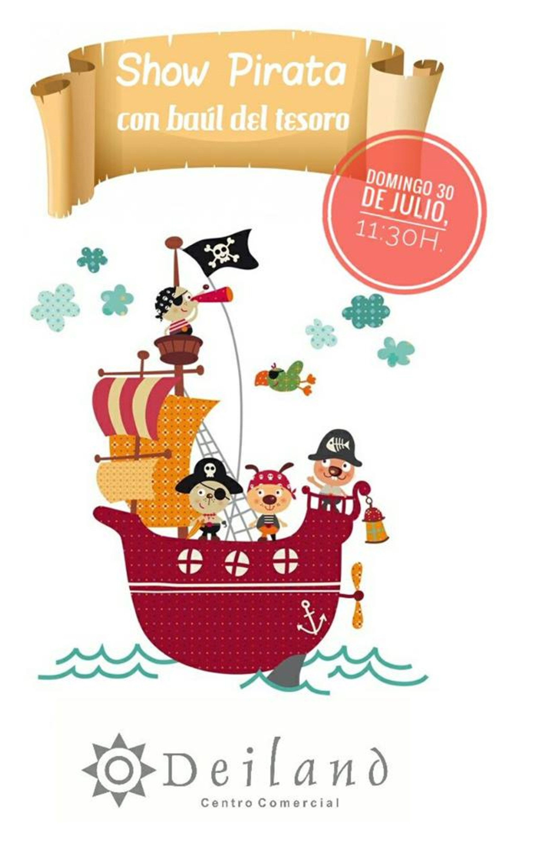 El domingo, 30 de julio, los más pequeños podrán disfrutar del Show Pirata con baúl del Tesoro en la planta sótano del Centro Comercial Deiland, a las 11:30 horas.