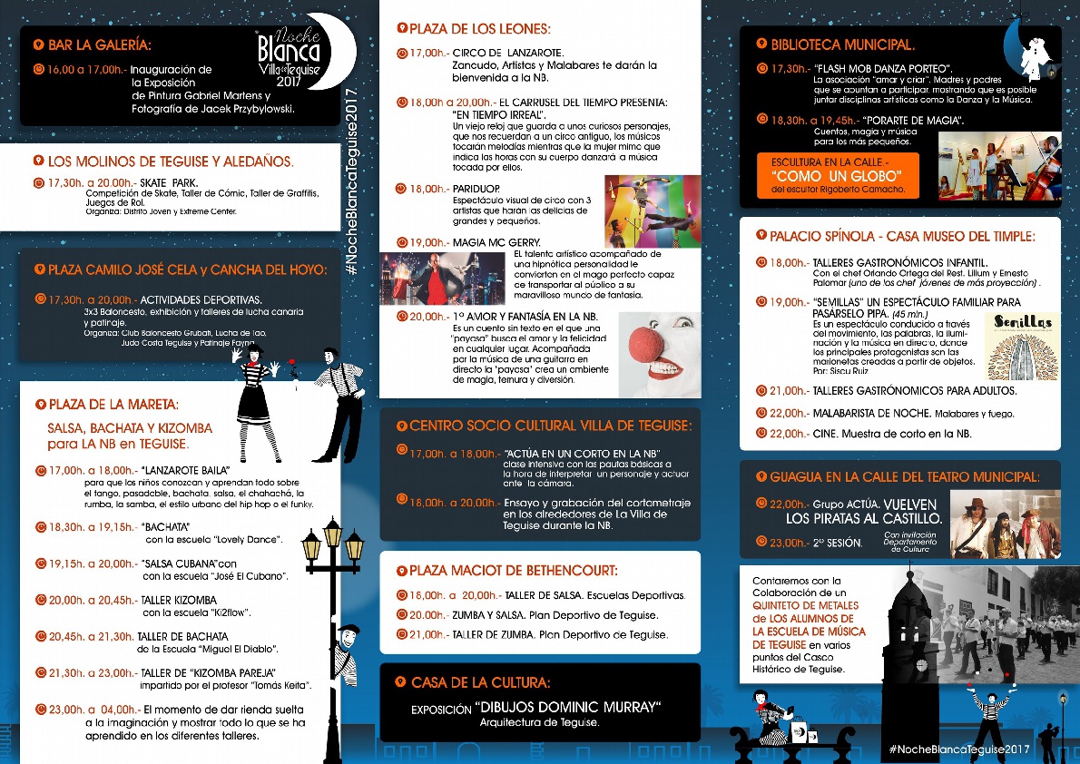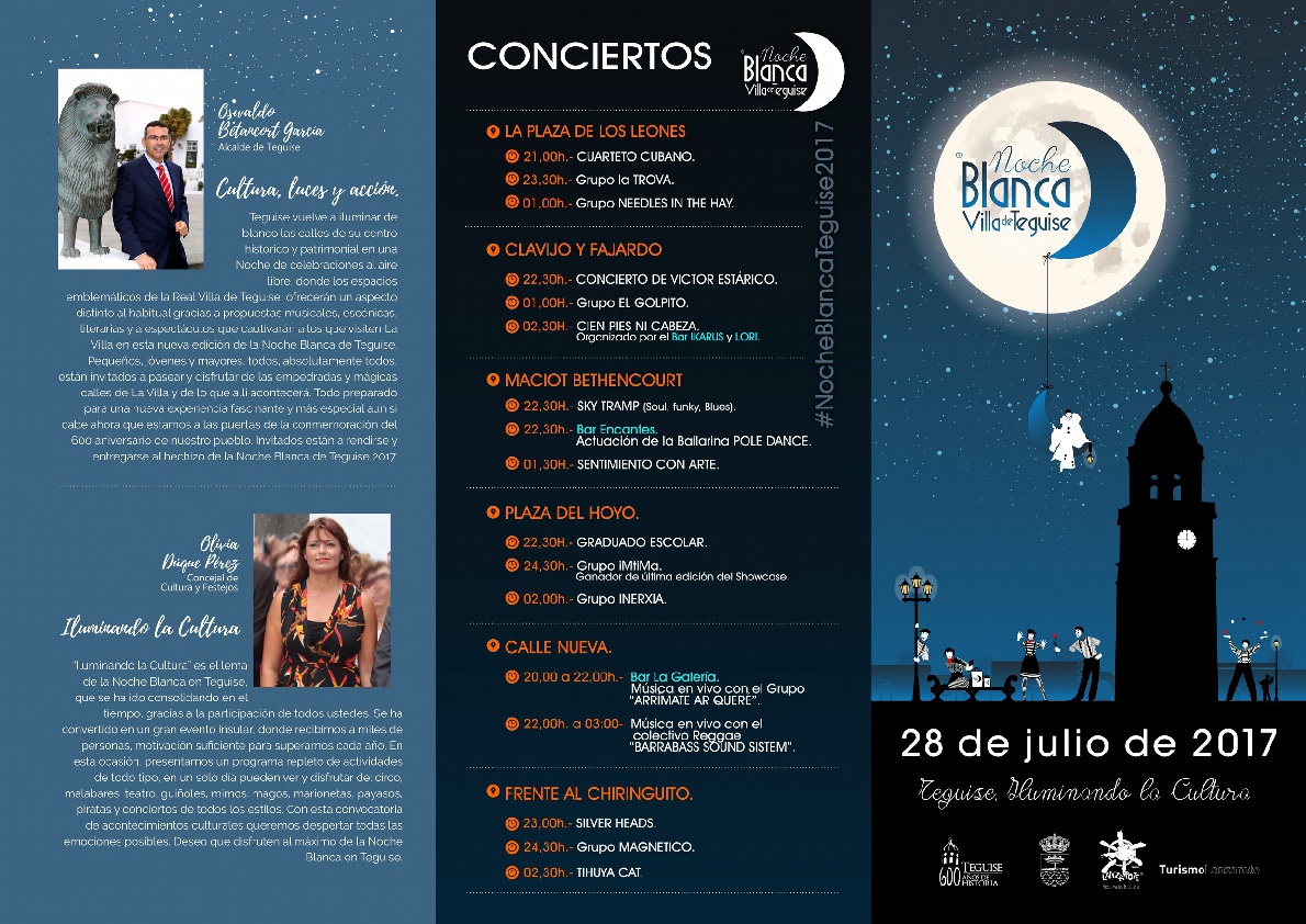 La Noche Blanca de Teguise 2017 tendrá lugar el viernes 28 de julio. Puedes ver el programa completo aquí: