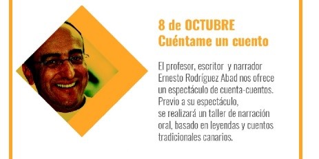 "Cuentame un cuento" (Tell me a story) storyteller by Professor, writer and narrator Ernesto Rodriguez Abad, who offers a reading on Saturday, October 8, at 9:00 pm in the Museum of Timple.