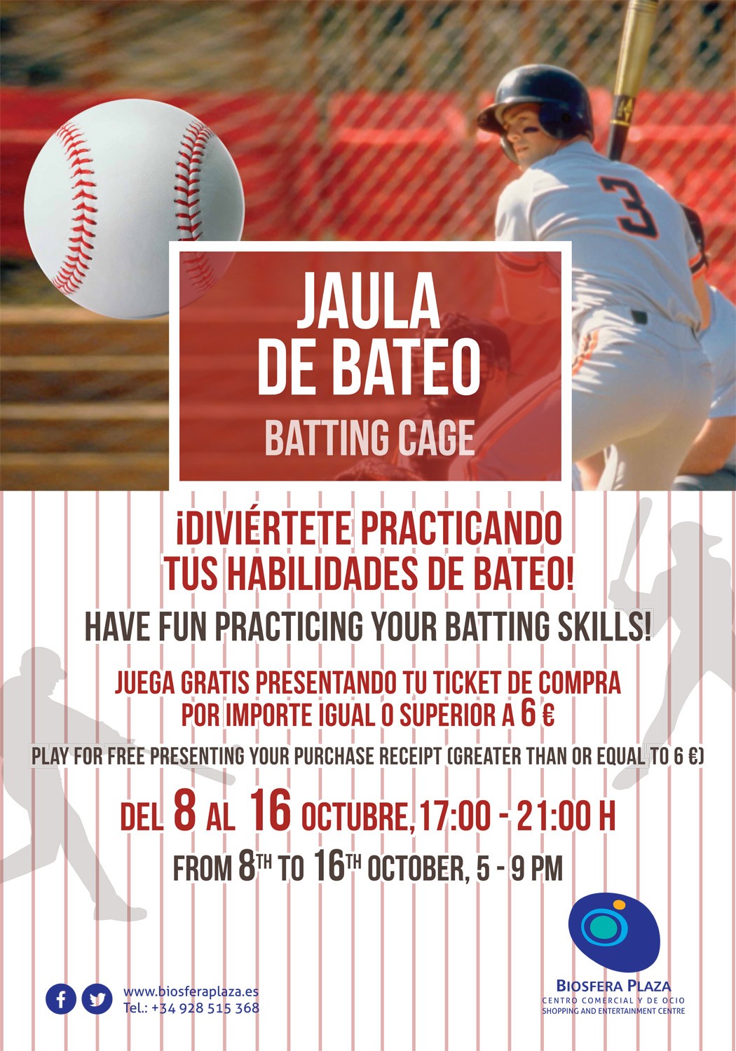 Have fun practicing your batting skills. Play for free presenting your purchase receipt (greater than or equal to 6€), from October 8 to 16, from 5:00 pm to 9:00 pm at the third floor of the Biosfera Plaza mall.